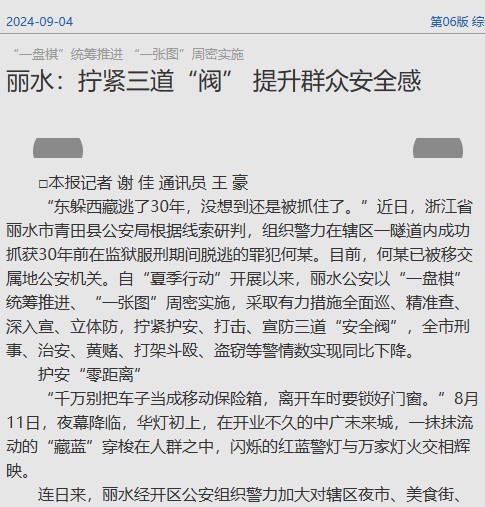 “一盘棋”统筹推进 “一张图”周密实施 丽水:拧紧三道“阀” 提升群众安全感