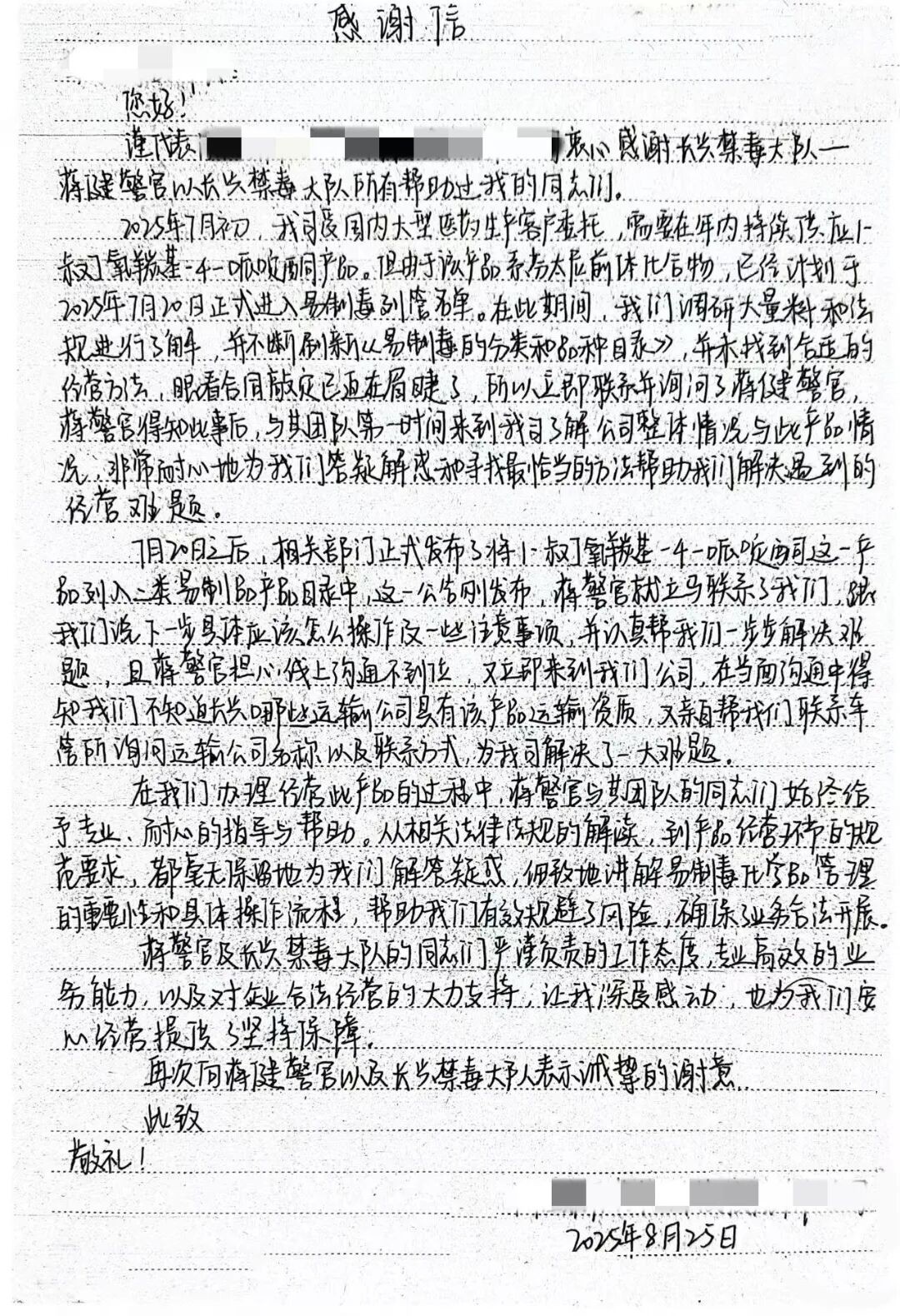 阳光下的守护︱一封手写感谢信,一份浓浓警企情!