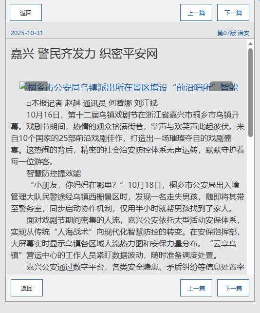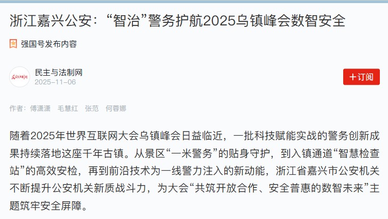浙江嘉兴公安:“智治”警务护航2025乌镇峰会数智安全