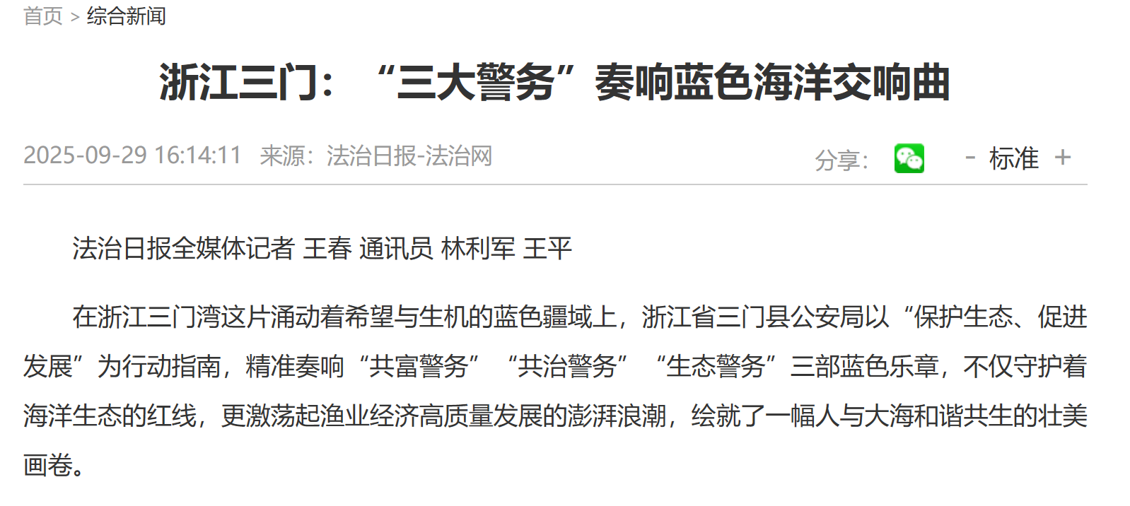 "台州公安深入实施海洋版“三大警务”建设 "