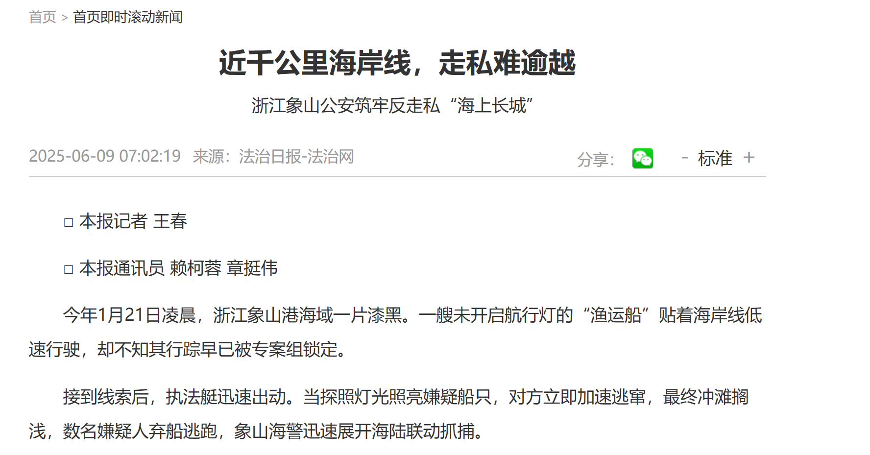 "近千公里海岸线,走私难逾越 浙江象山公安筑牢反走私“海上长城”"
