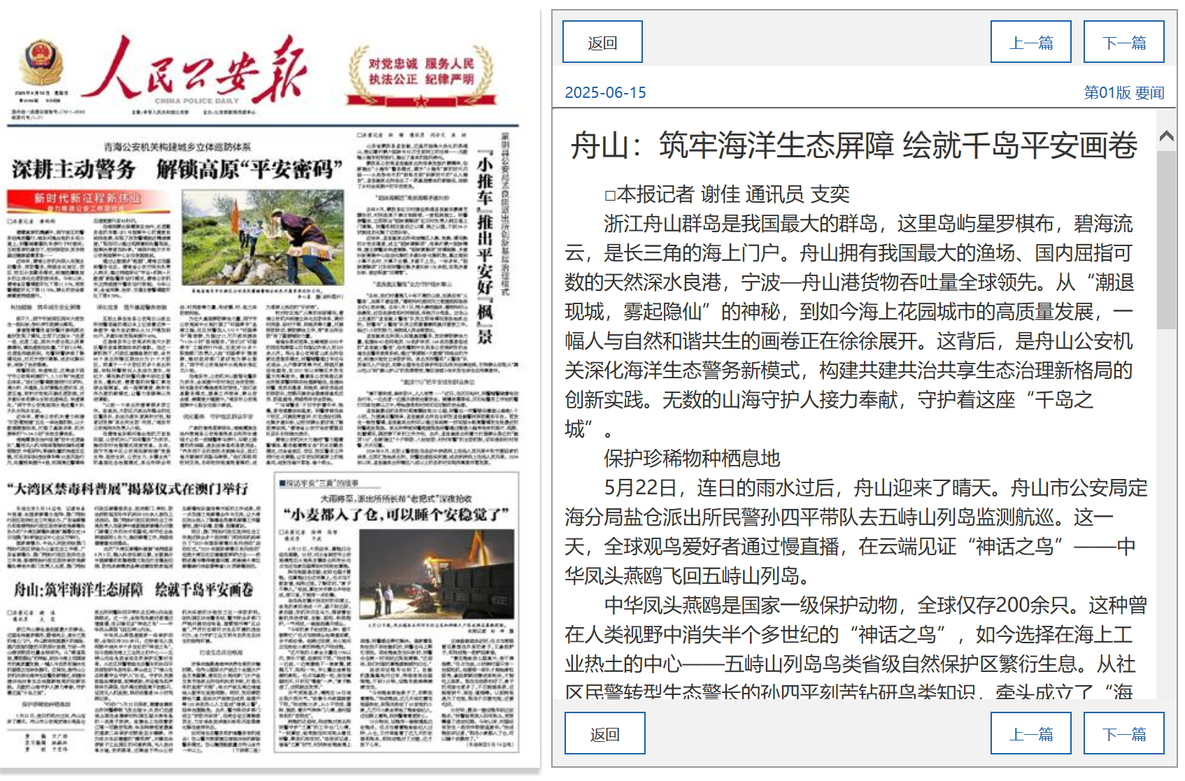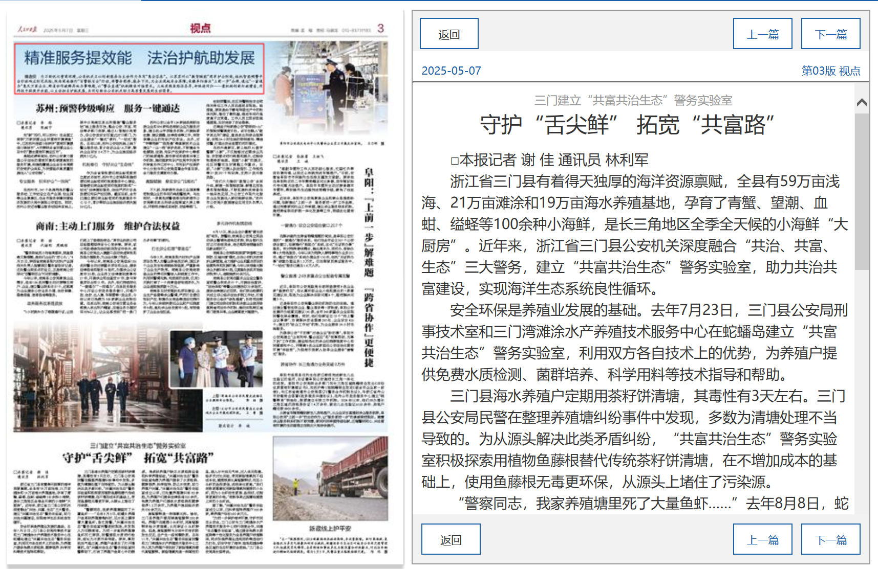 "台州公安“山海一体”生态协同保护 "