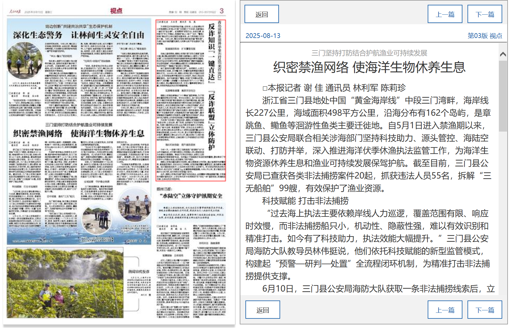 织密禁渔网络 使海洋生物休养生息 三门坚持打防结合护航渔业可持续发展