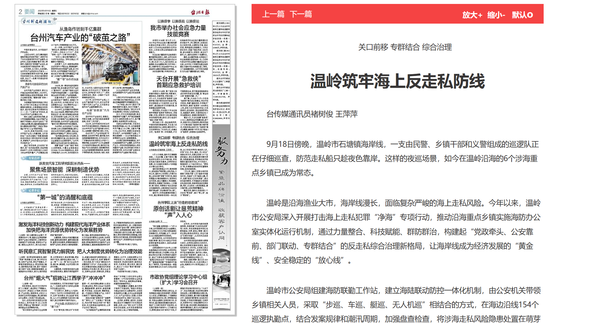 温岭关口前移筑牢海岸“放心线”
