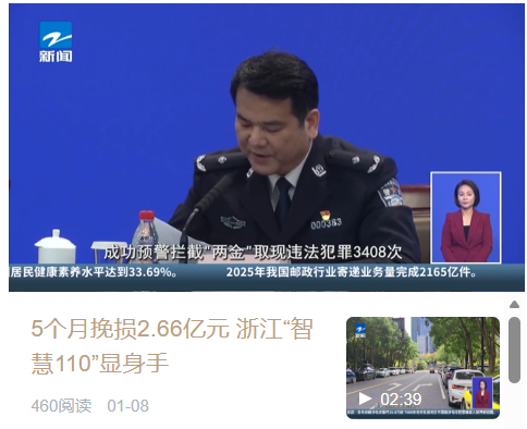 5个月挽损2.66亿元 浙江“智慧110”显身手