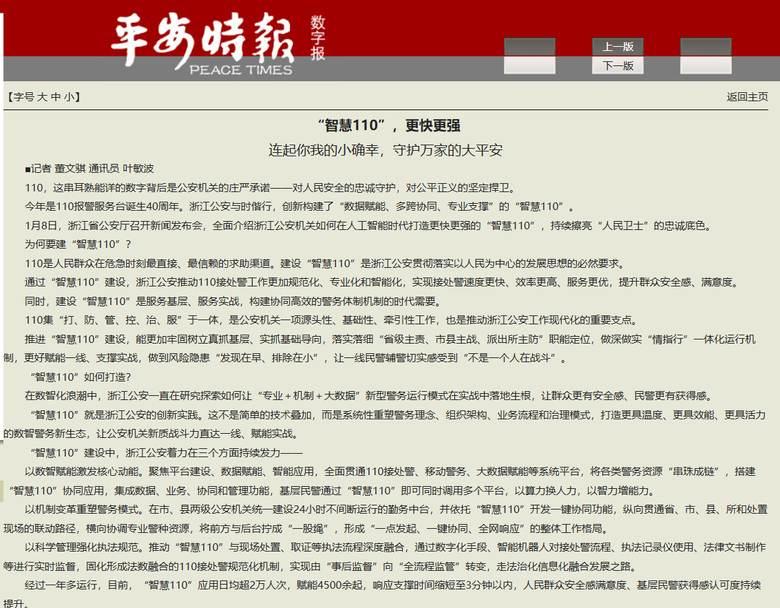 浙江建设“智慧110” 警情响应支撑时间缩短至3分钟内