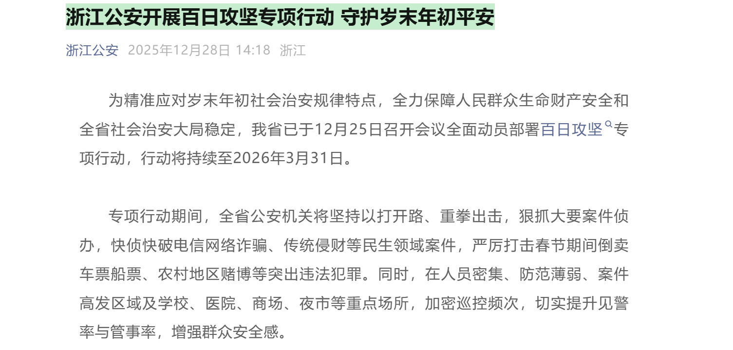 百日攻坚护平安丨浙江开展专项行动