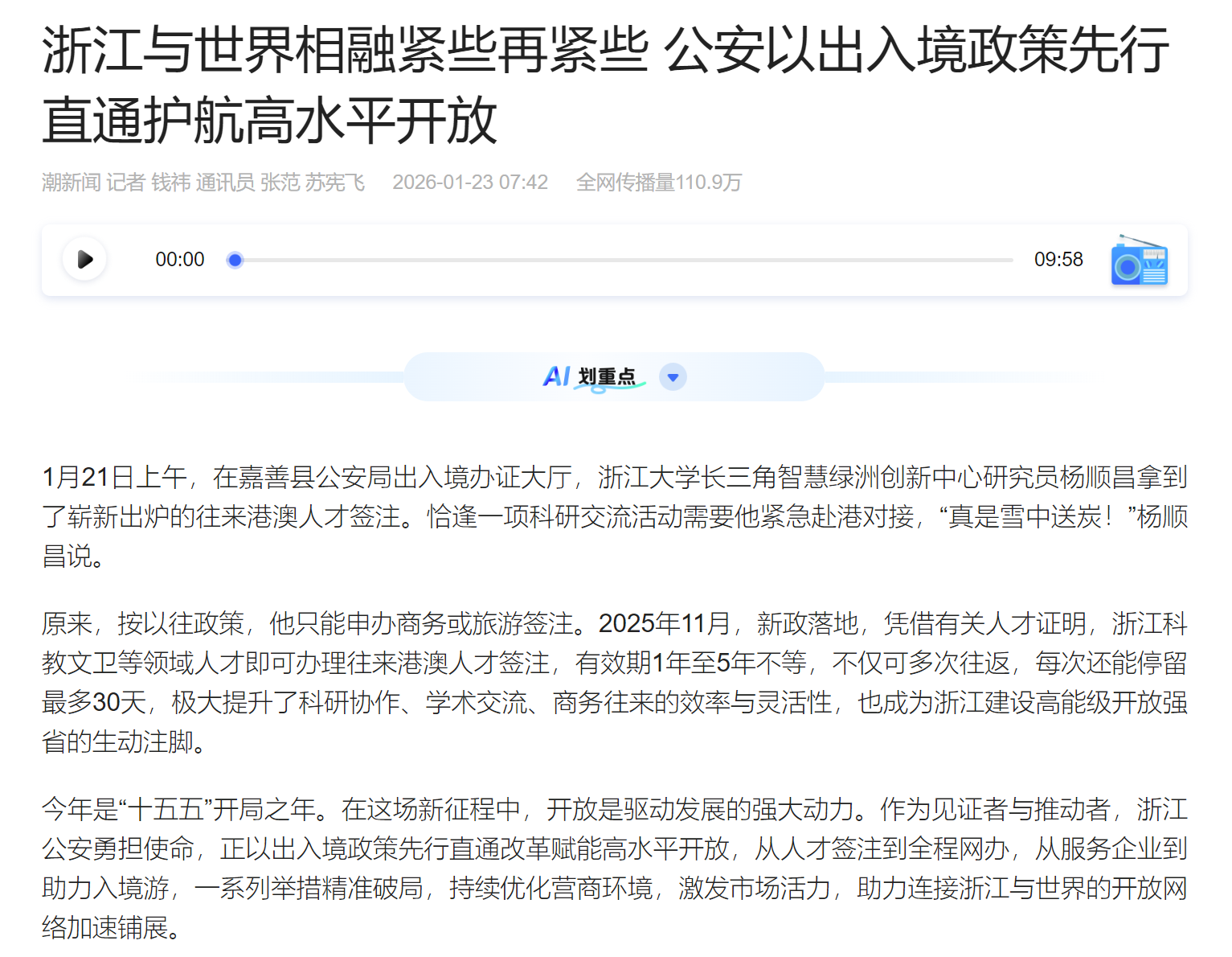 浙江公安以出入境政策先行直通护航高水平开放——浙江与世界相融,紧些再紧些
