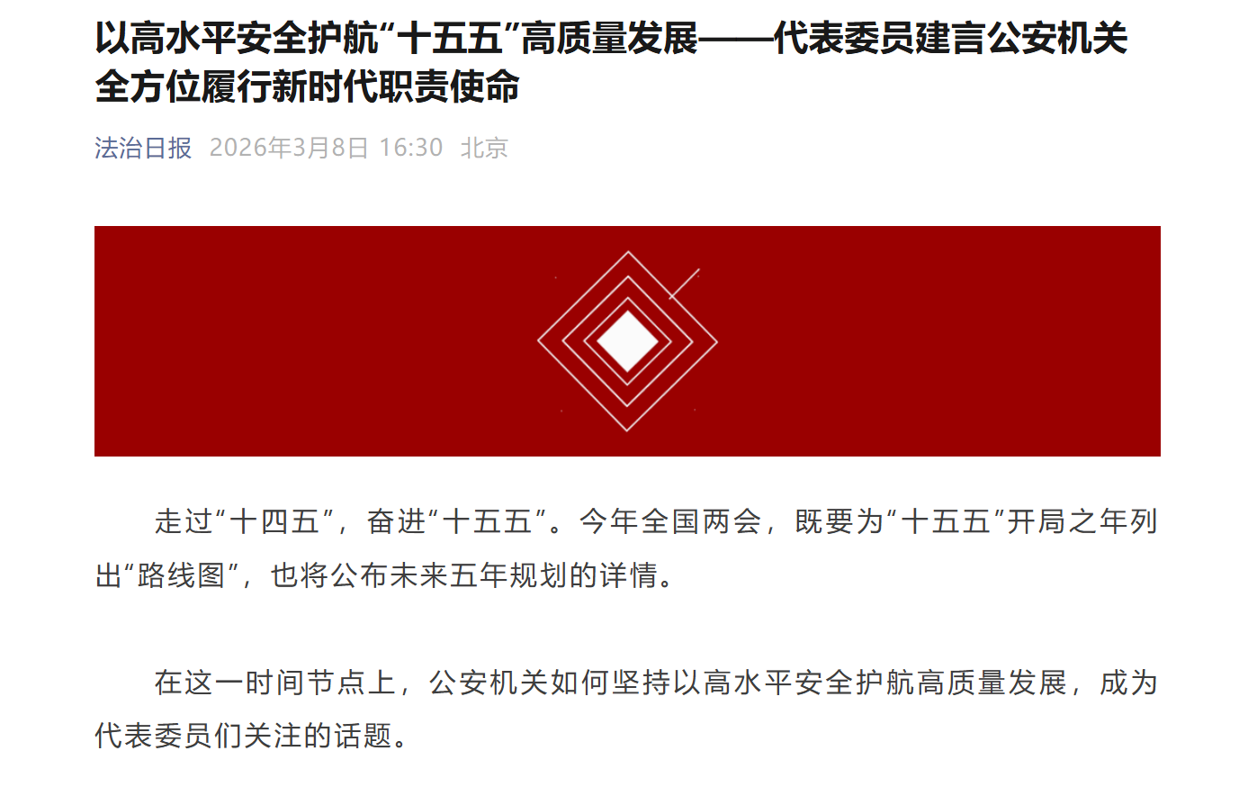 以高水平安全护航“十五五”高质量发展——代表委员建言公安机关全方位履行新时代职责使命