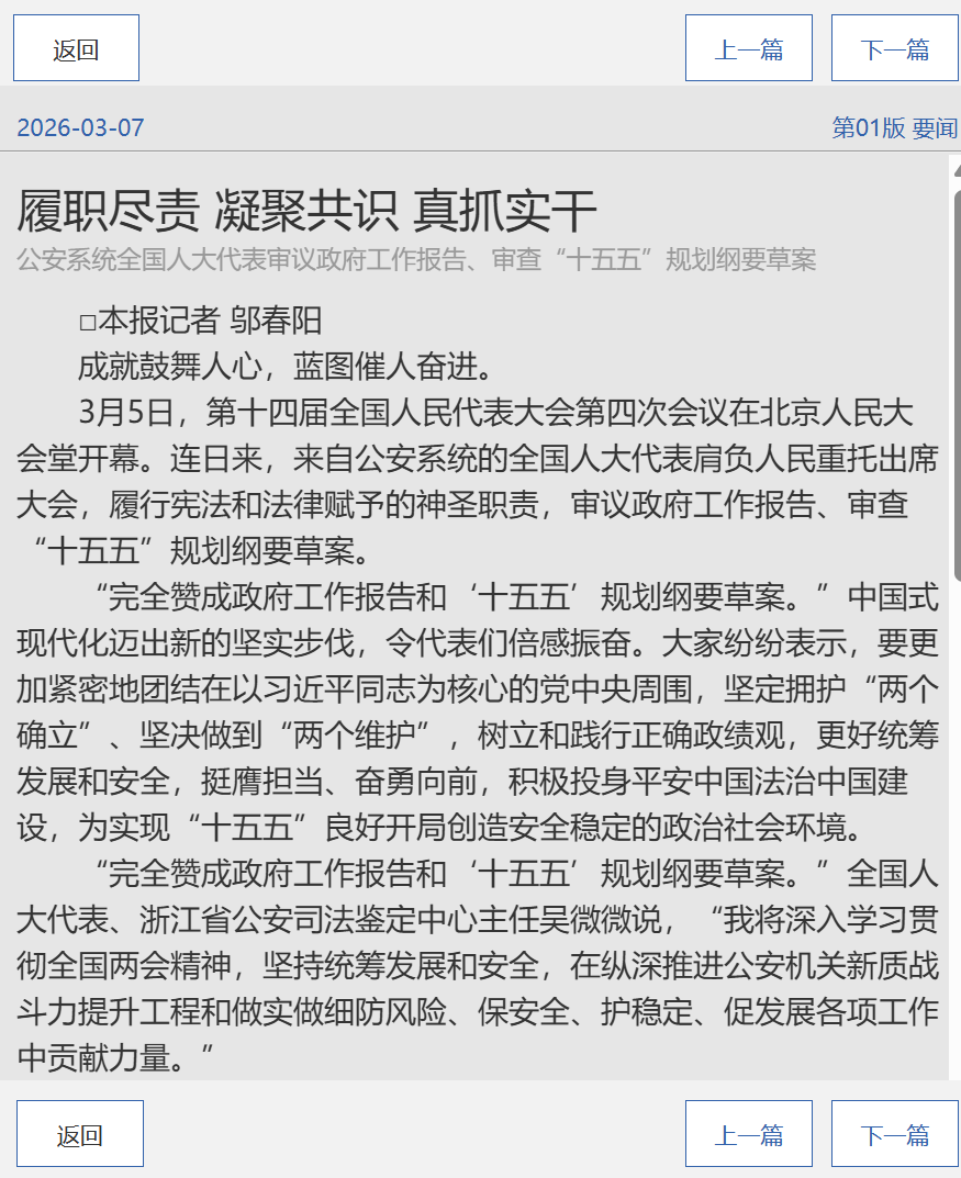 履职尽责 凝聚共识 真抓实干 公安系统全国人大代表审议政府工作报告、审查“十五五”规划纲要草案
