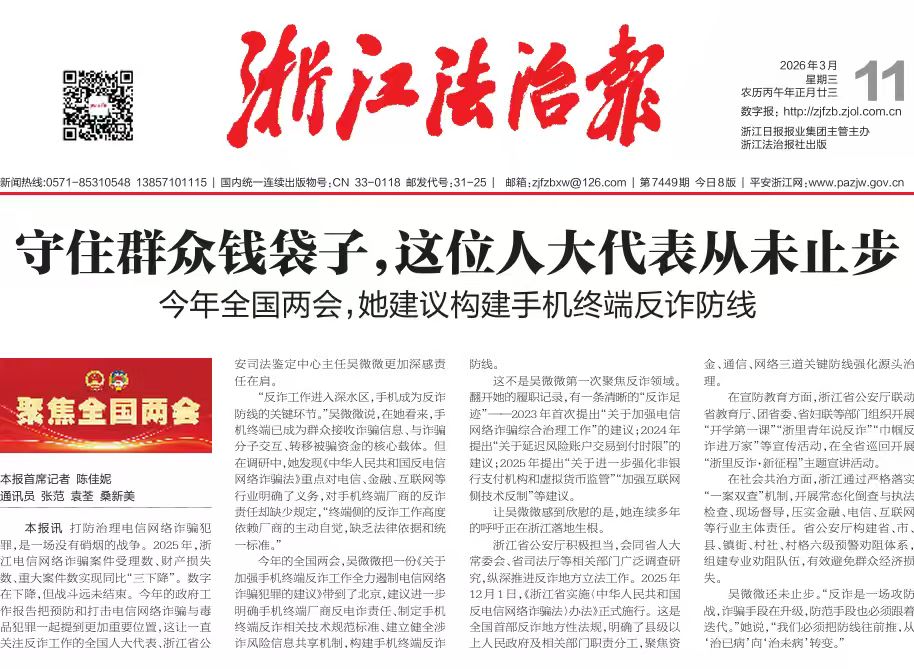 全国人大代表、浙江省公安司法鉴定中心主任吴微微:守护百姓“钱袋子” 筑牢终端“防护墙”